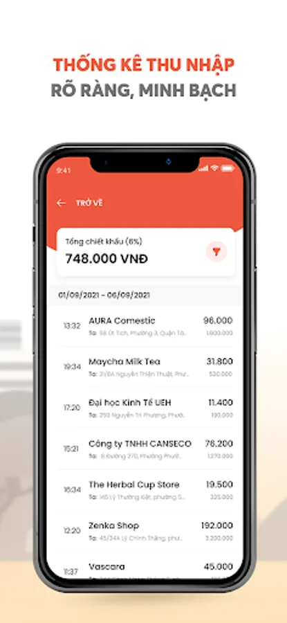 Earning statistics and bonus checks, clear and transparent cash flow history right on the App