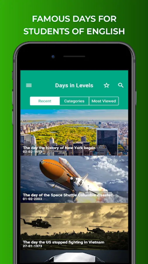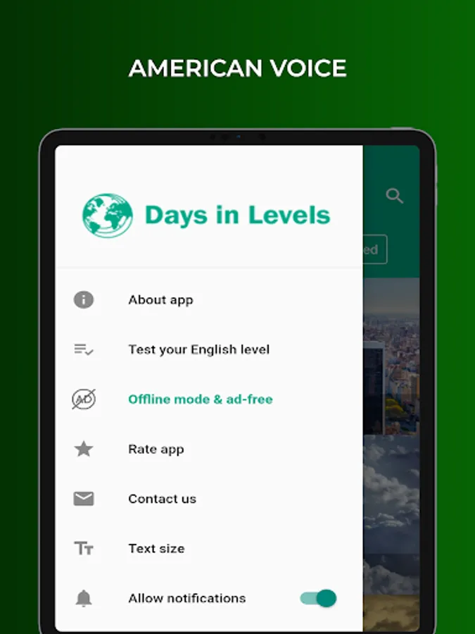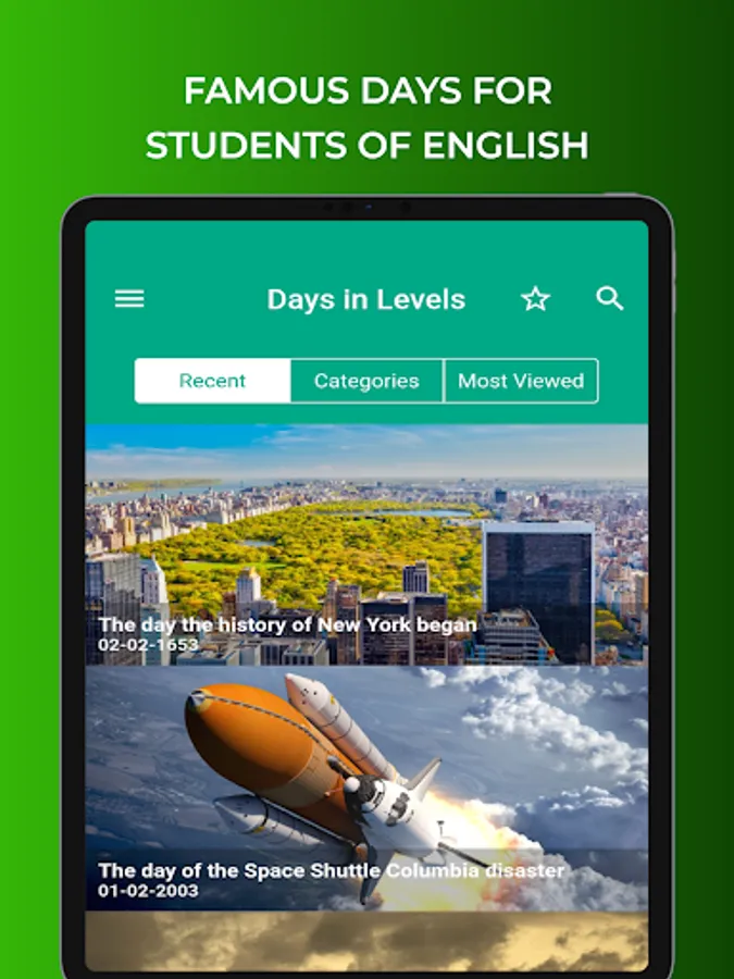 Days in Levels is an application to improve your English naturally and fast with our articles. In our short articles, we use words which are used in English often.