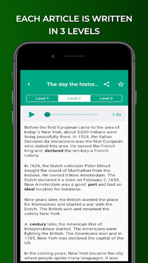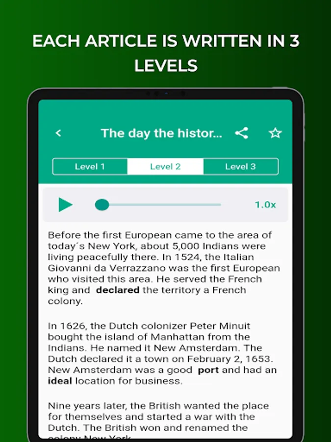 Each article is written in 3 levels.