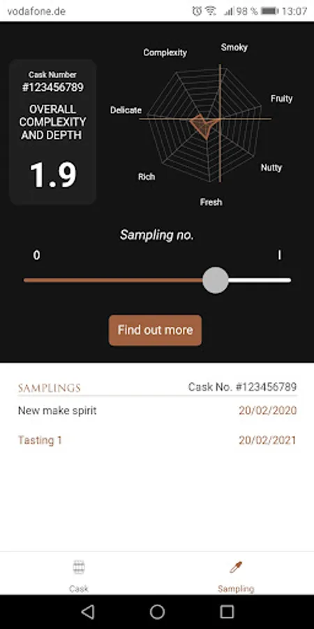 Cask tracking - Track the evolution of the spirit in your cask. Each year on the filling anniversary we will assess the state of the spirit and you will receive a proprietary ‘spidergram’ developed by the Borders Distillery® . As the spirit matures into whisky you will be able to follow its progress of the spirit by scrubbing through your ‘spidergrams’ and after three years you will be able to assess progress of the whiskies within the American Cask universe.