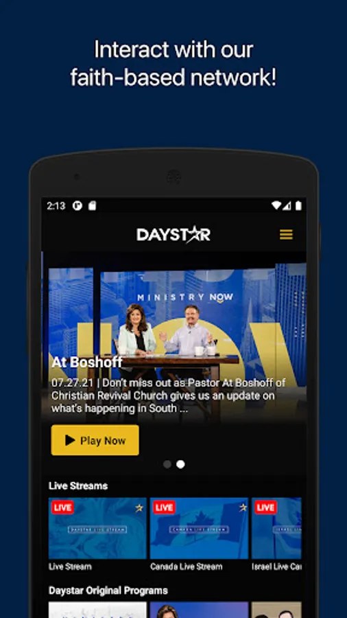 The Daystar app is a new way to interact with the fastest-growing, faith-based network in the world! You can enjoy the Daystar live stream or keep up with your favorite videos with Daystar on Demand.