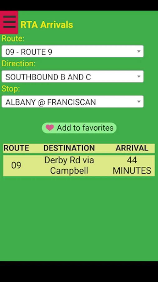 Simply select a route, direction and stop to see the next bus arrivals. Save your favorite stops to see upcoming arrivals with a single touch.