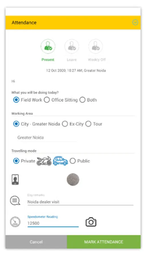 - Mark attendance using Mobile App (Time and GPS Location is mapped)