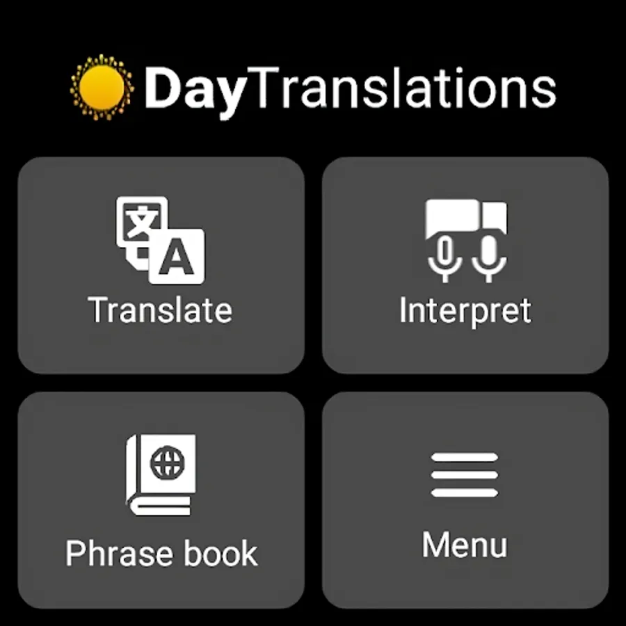 Day Translations is a world-class translations company, so we understand languages, navigating diverse cultures and cross-linguistic communication. Our premium translator will help you translate written or recorded phrases accurately, as fast as possible. Because sometimes machine translation falls short, our app also includes an emergency button through which you'll be able to contact our team for human translation or interpreting services.