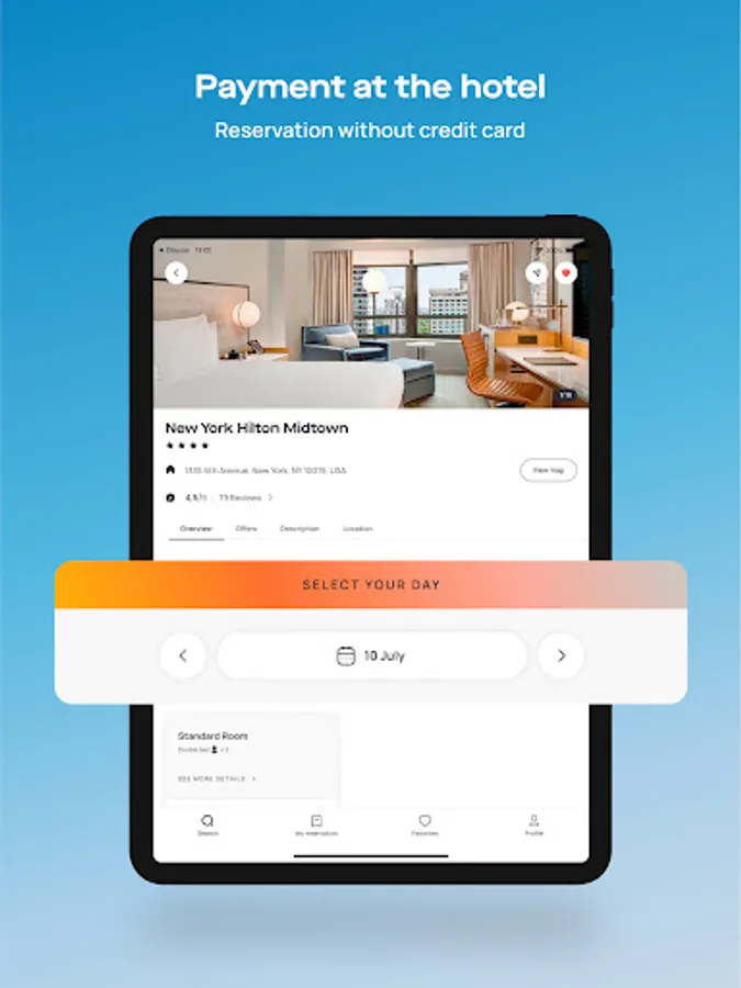 The Dayuse app has been designed to make it easier for you to book a hotel room during the day. Intuitive and ergonomic, it displays all of the practical information about a hotel on a single page, including prices, booking hours and access, all at the click of a button.