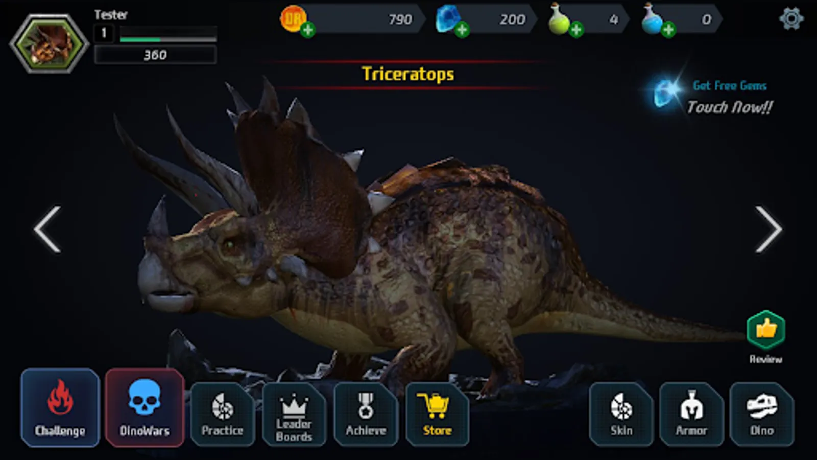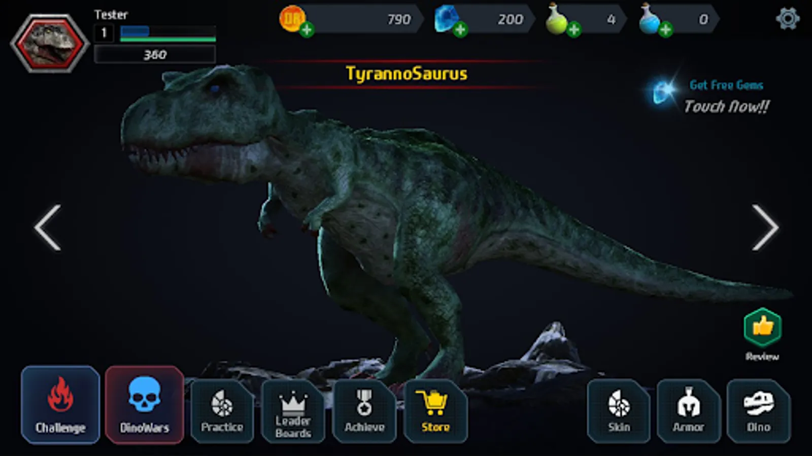 Enjoy fierce battles with powerful dinosaurs.