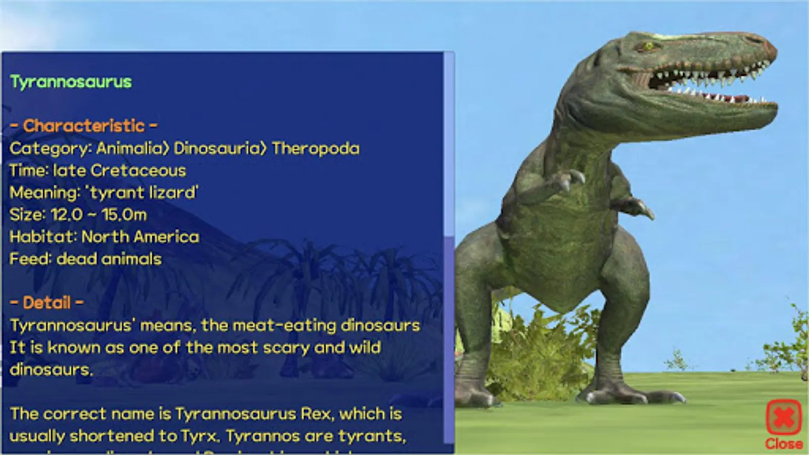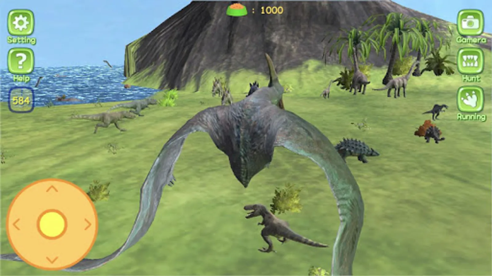 Divided by dinosaur type, you can swim in the water and fly in the sky and run the land and play hunting and running games.