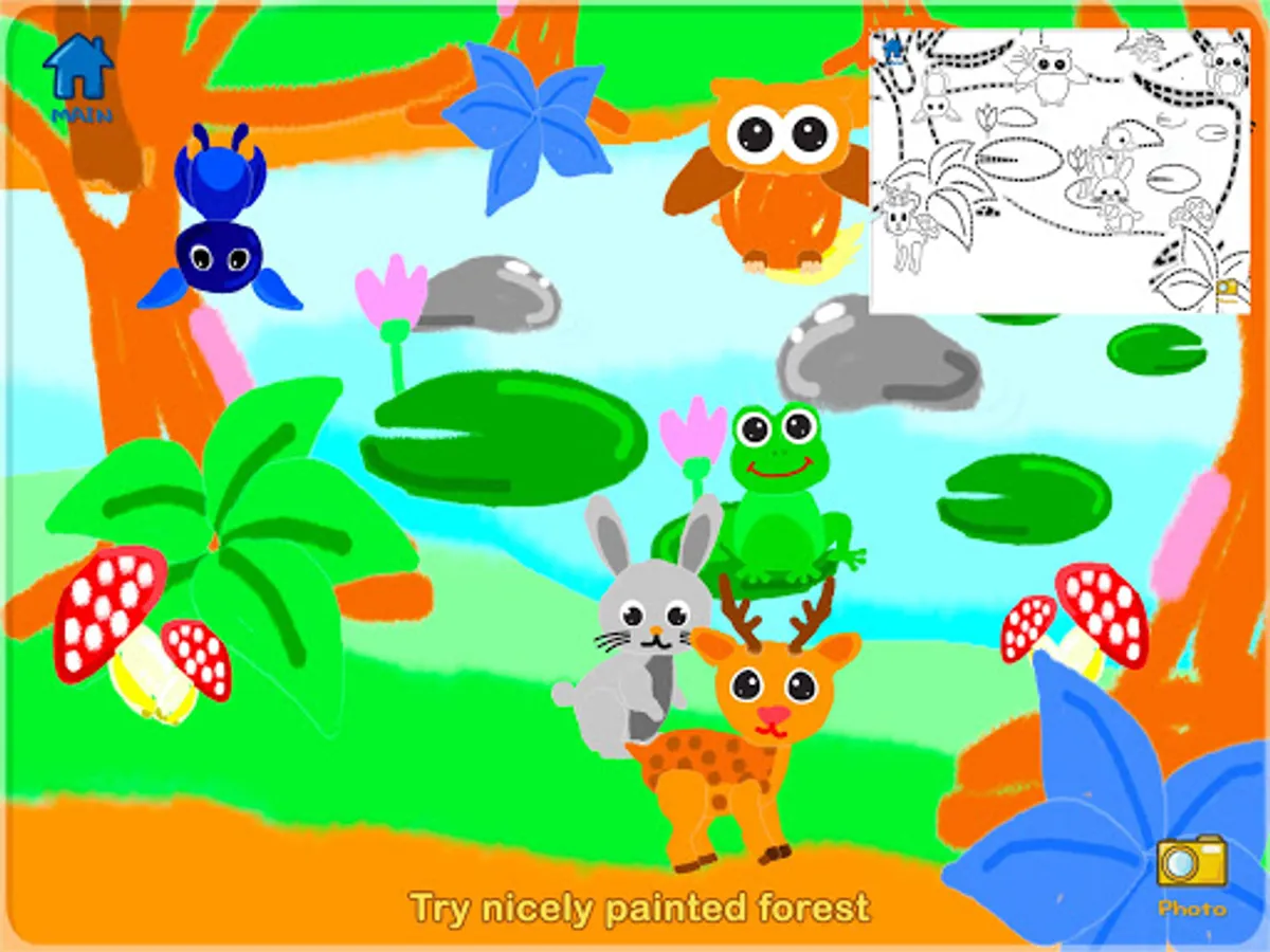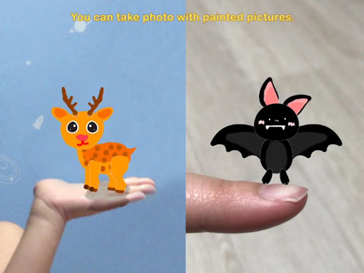 You can play with painted animals, and use an augmented reality camera to take pictures of real animals and painted animals together.