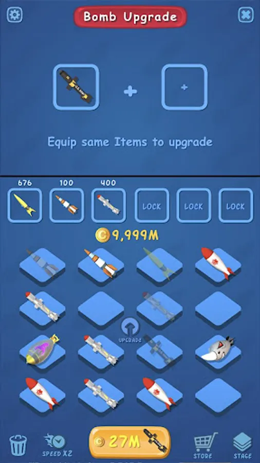 There are 28 kinds of bombs in total and there is an upgrade system from step 23 to improve the performance of bombs.