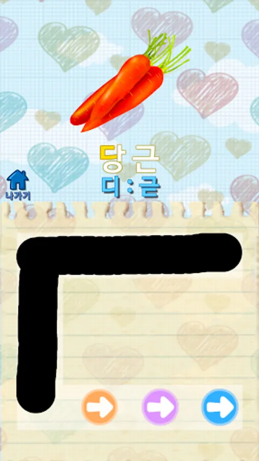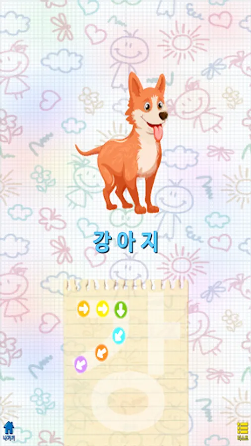 You can study Hangul by simply drawing in the direction indicated, and you can learn several words and consonant vowels.