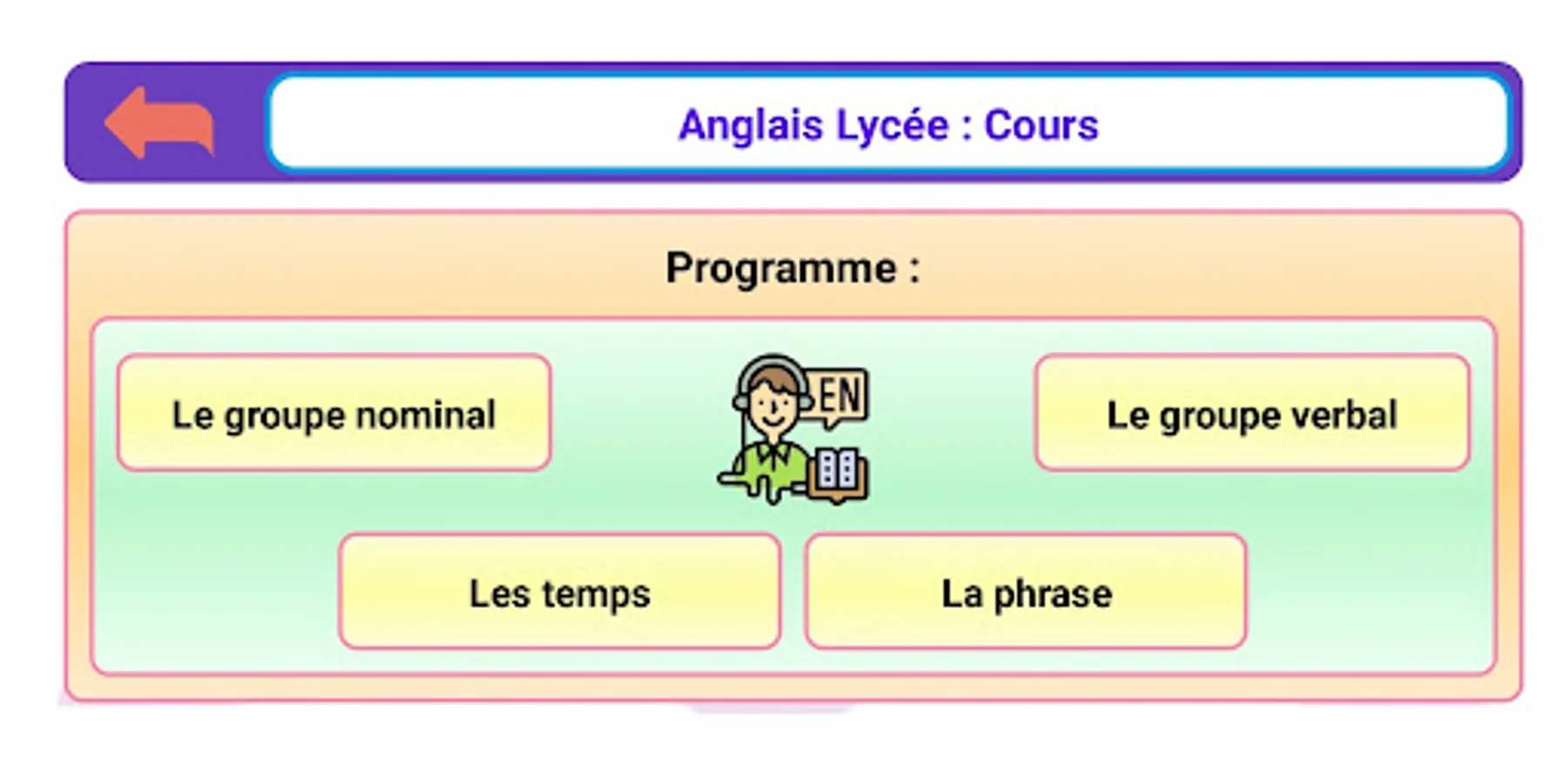 This application contains English lessons for high school students (Second, Première and Terminale), summaries of all lessons and activities without Internet.