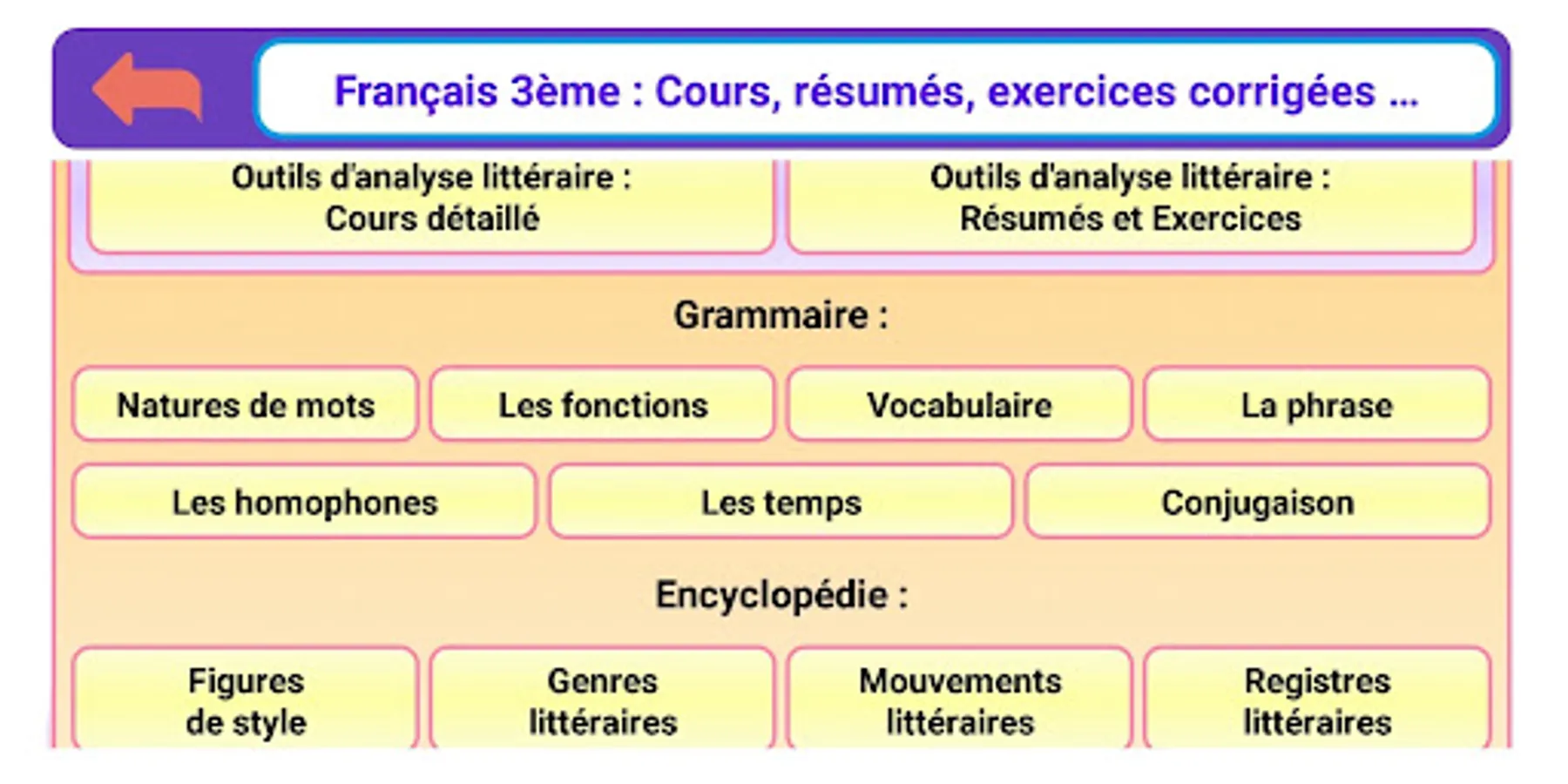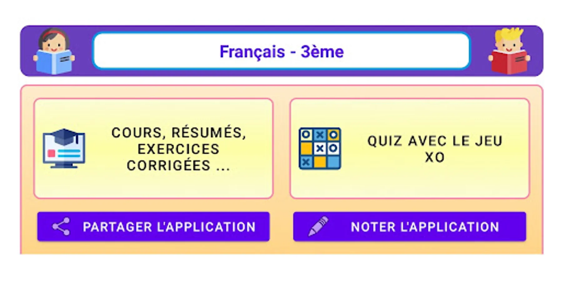 This application contains French lessons for 3RD students, summaries and corrected exercises of all lessons and activities without Internet.