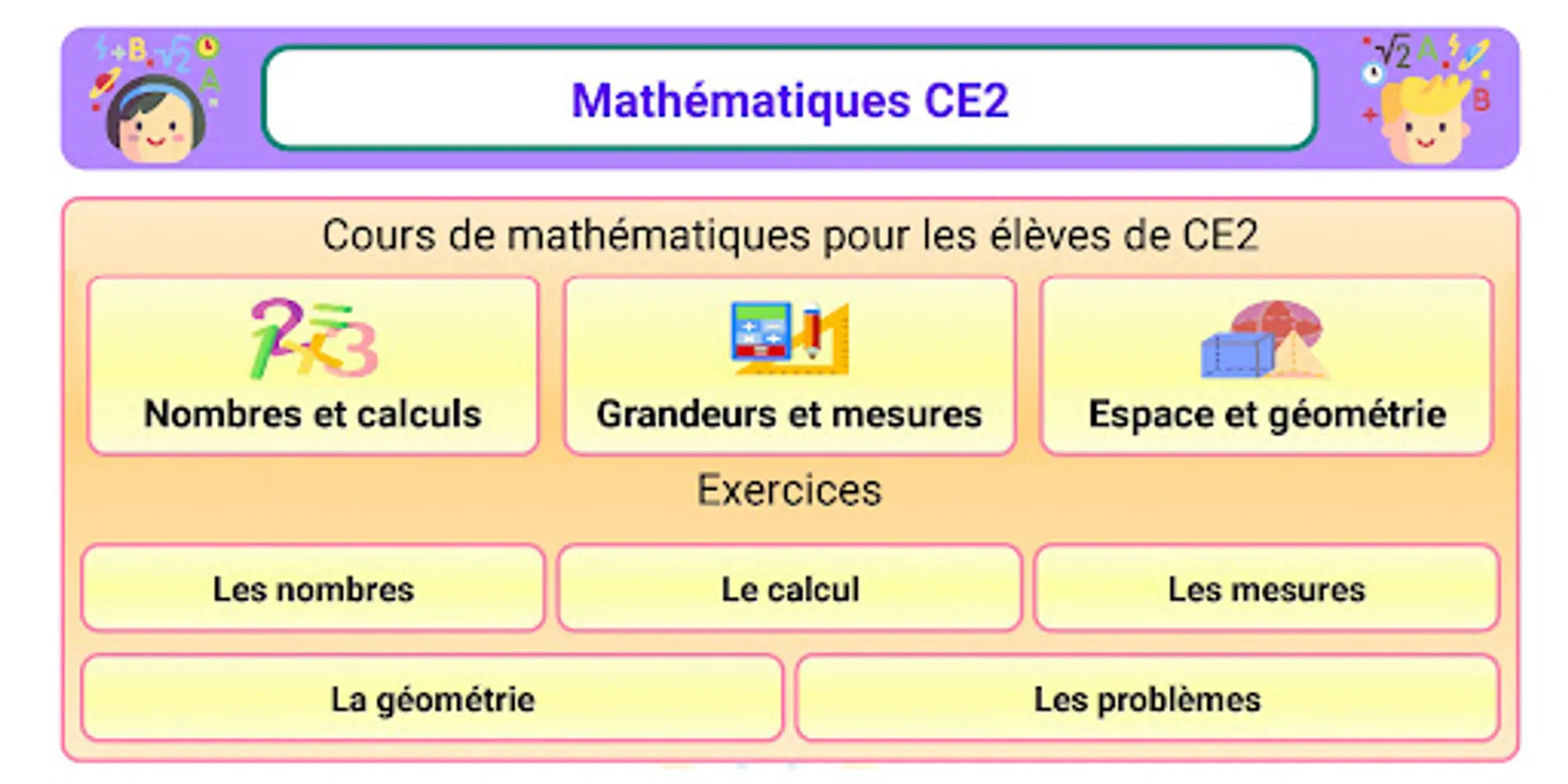 This application contains Mathematics lessons for CE2 students, summaries of all lessons and activities without Internet.