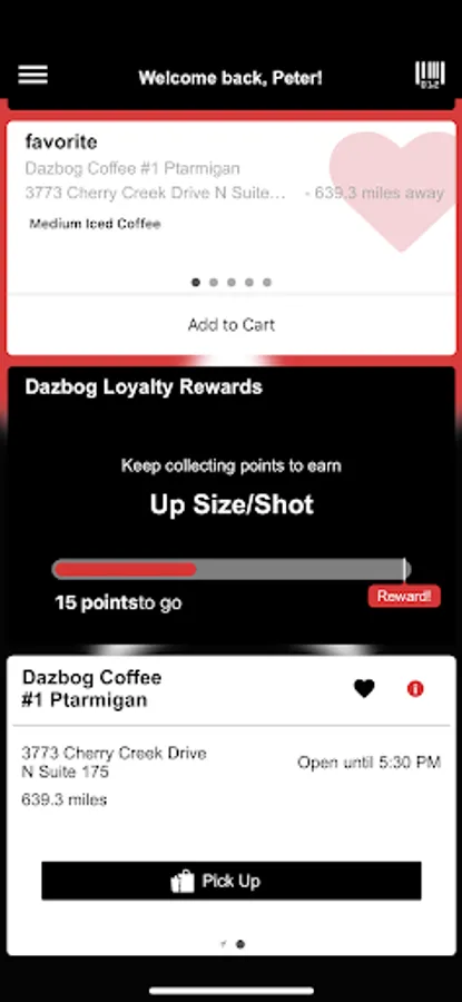 Dazbog Coffee for iPhone lets you order ahead, pay with your phone and earn rewards along the way! The more you visit us and enjoy a beverage in one of our retail locations, the faster you’ll earn a free drink! Earn 2 points for every $1 spent.