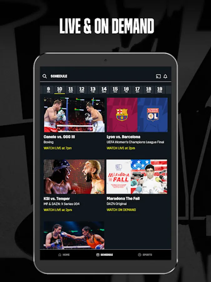 Access our world-class lineup of boxing, Women’s Football, Basketball, MMA and more through the DAZN app. Watch live or on-demand across multiple devices so you can tune in at home or on the go.