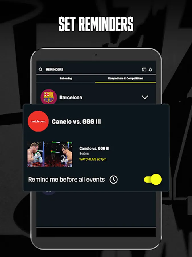 WATCH LIVE SPORTS FEATURING BOXING, SOCCER, DARTS, MMA, SNOOKER AND MORE FROM AROUND THE WORLD.