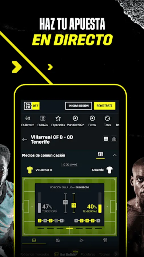 The DAZN Bet sports betting app has a user-friendly interface that gives you all the information you need to place your bets. Watch your favorite sport on DAZN and get closer to the action with the sports betting app and live betting markets.