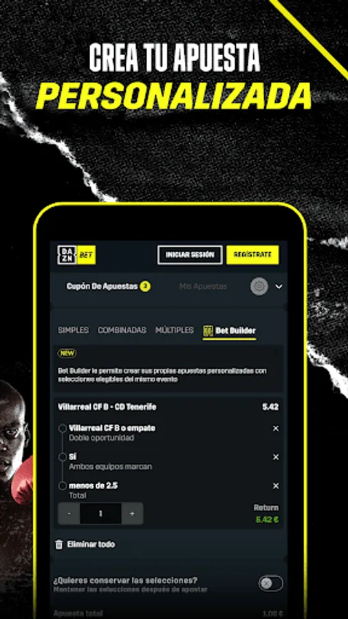 At DAZN Bet we know you like sports because we love them too. For years, DAZN has provided the main broadcasts of sporting events in Spain and now DAZN Bet offers a betting product for sports fans. Follow your favorite football, boxing, golf and basketball events on DAZN and get the most up-to-date betting markets on DAZN Bet. The DAZN Bet app has all the main tools for betting fans such as live betting, custom bet creation and tons of additional betting features.