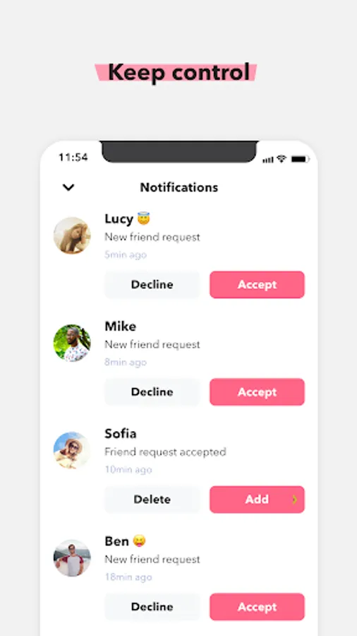 Make new friends all over the world with Hoop! Go through millions of profiles from you own country or worldwide. Send friend requests to the profiles you like and add them on your social apps. Keep control over your socials and decide who you want to share them with.