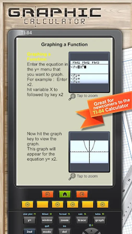Finally our best selling TI84 Graphing Calculator tool has landed on the Play store! The included TI 84 calculator manual in this TI-84 Graphing Calculator learning app is simply the most easy to understand and navigate than any of our previous versions. As you most likely already know, the college graphing calculators of today are about as easy to learn as a F16 fighter jet! The online tutorials are just too hard to understand and the layout is not always the most intuitive for learning. What student has the time to learn these advanced instruments? The size of these calculators are quite large and can be intimidating. Our app can be held in one hand and is very easy to use and learn with. The TI 84 Plus Ce and other TI calculators are the best graphing calculators for the college and high school math class students of today. These have been the most popular graphing calculators for a good reason. They are super elite math tools essential for all top students. The price of this TI84 manual app is super reduced and is the best value we can offer for such a great quality tool. The hd looks are very pleasing to the eye and the images and tools can be zoomed in for easy to read vision and easy tap access. Learning the Texas TI 84 Calculator has never been so easy and fun! Our app is completely free of ads.
