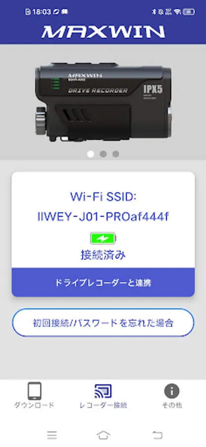本アプリはMAXWIN製無線LAN搭載ドライブレコーダー専用アプリです。
