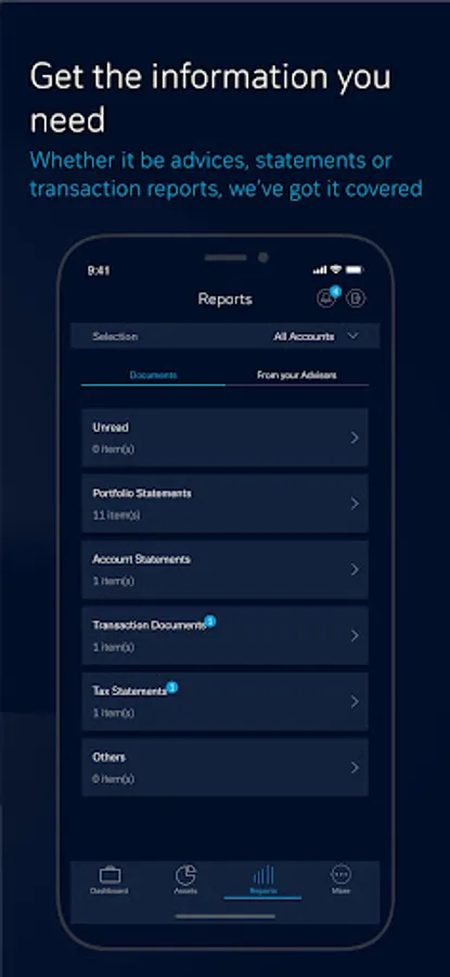 • Portfolio and dashboard overview: Get a detailed overview of your portfolios which includes asset class allocation, currency holdings, valuation and performance along with additional details on holdings, maturities and transactions
