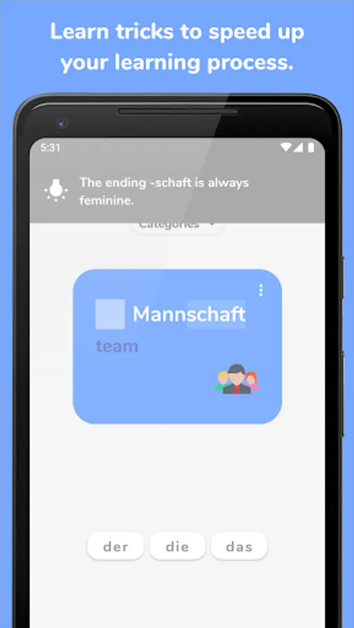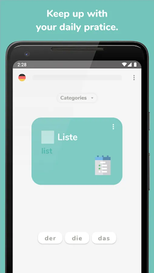 Language learning application to learn German articles and vocabulary with the help of flashcards.
