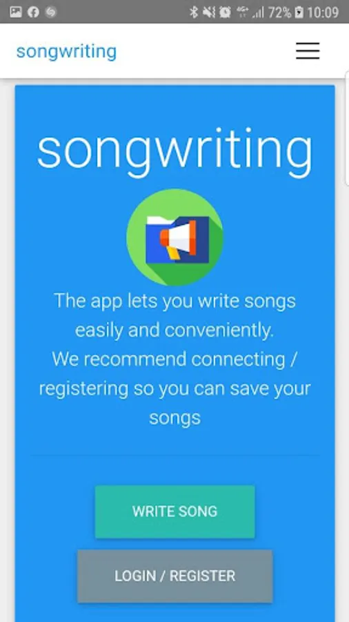 The app allows you to write and save your songs automatically. When at any given moment you will be presented with a wide variety of rhymes for the last word you wrote.