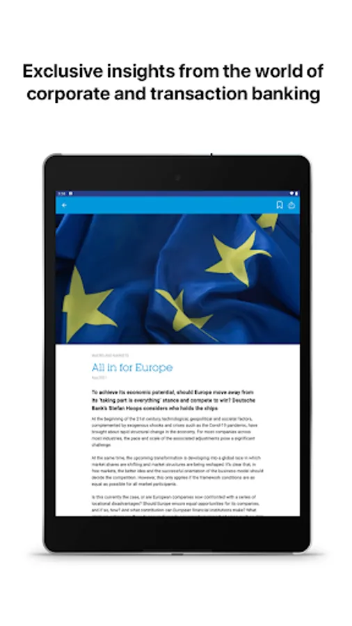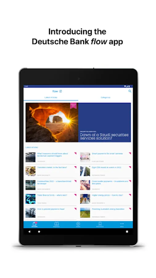 The flow app delivers exclusive Deutsche Bank insights from the world of corporate and transaction banking, plus content from our award-winning flow client magazine, all on-the-go from the convenience of your mobile. Join our 50,000+ and growing community of clients, partners and advisers! Our team of experts and editors provide regular analysis and opinion on a range of topics including cash management, macro and markets, sustainable finance, regulation, securities services, technology, trade finance and trust and agency services.