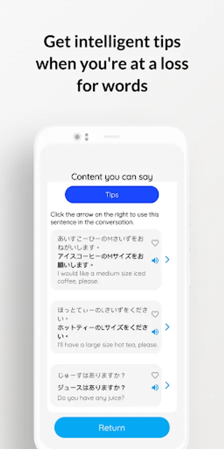 Aoi allows you to practice Japanese speaking effortlessly and without pressure. Whether you are preparing for an upcoming trip to Japan, or for a smooth life and work in Japan, Aoi can provide you with the most complete and practical conversation content.