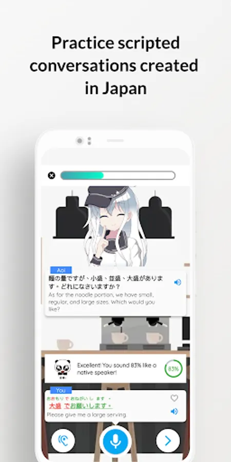 Just like if you were learning how to swim, you’d go in a pool instead of reading a swimming book, if you want to get good at Speaking Japanese, you’re gonna have to start actually speaking and do it every day! Aoi makes this realistic.