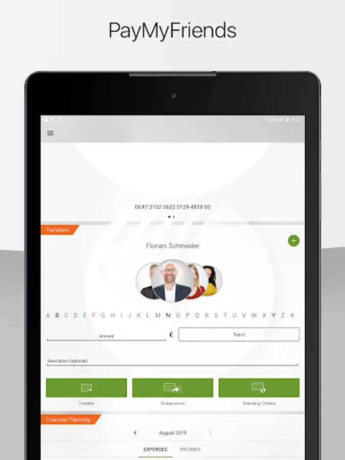 In the account overview your pending transactions are presented in clear, tabular form, giving you greater control of all your finances than ever before. By using the slider you can see all your transactions and account balances.