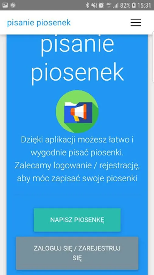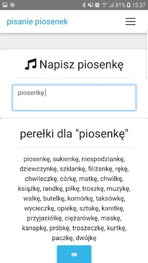 The application allows you to automatically write and save songs. When at any time a wide spectrum of rhymes will be displayed for the last word you wrote.
