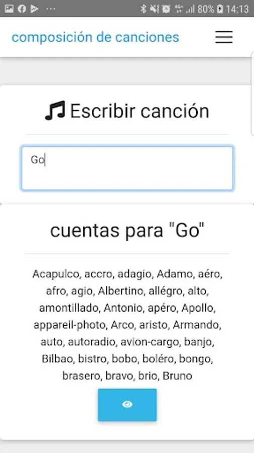 The application allows you to write and save your songs automatically. When at any time you are presented with a variety of rhymes for the last word you wrote.