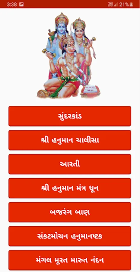 In this application, you will find the complete Sunderkand path, Hanuman Chalisa, Hanuman Dada of Aarti, Bajrang Baan in Gujarati language.