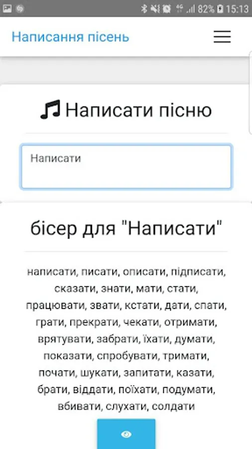 The application allows you to automatically write and save your songs. When at any time you will be presented with a variety of rhymes for the last word you write.