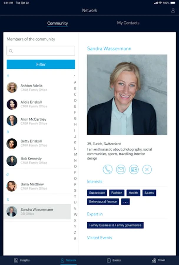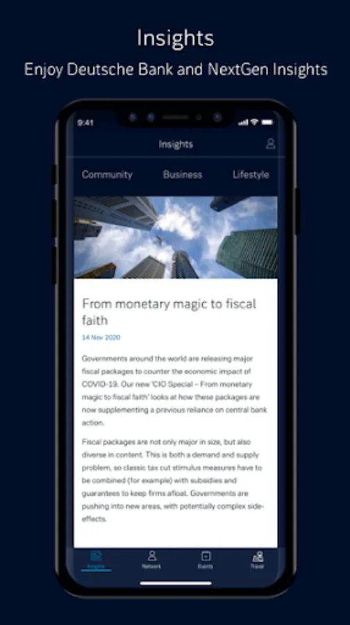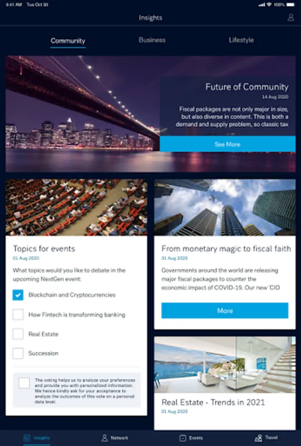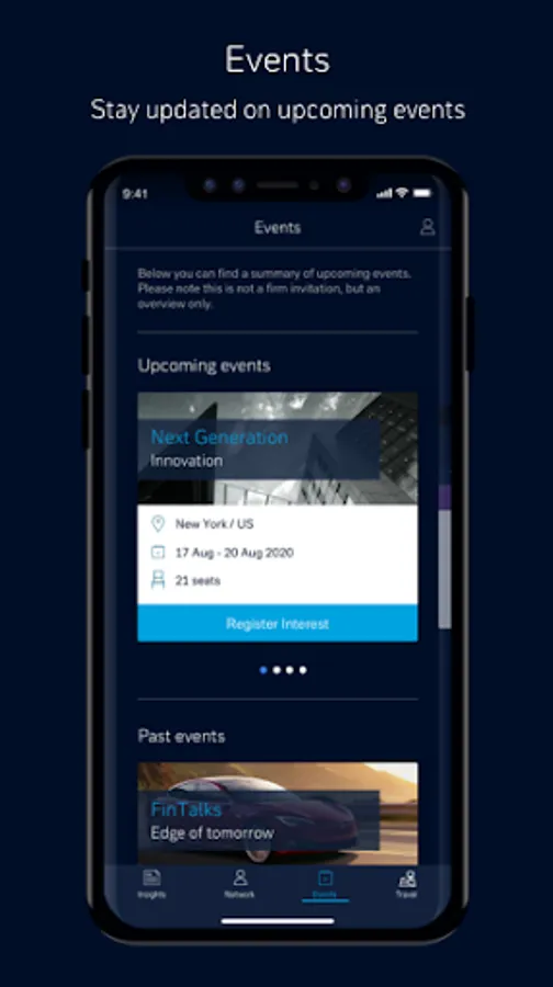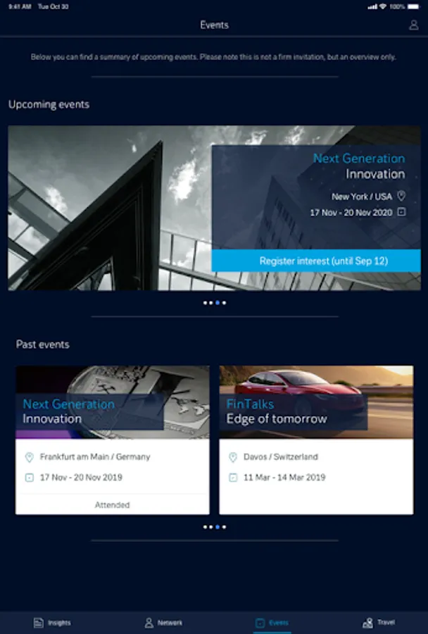 The app will act as the go-to interface that transparently communicates our NextGen offering from flagship events to tailored topics of interest for this exclusive network.
