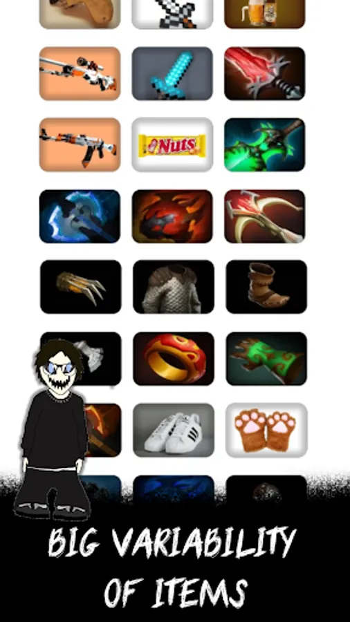 Tons of items are available for you! There are some lifesteal, critical attacks, movespeed, health regen etc! Some things in the shop are from dota, some is just fun and some are made by looking at memes. A large variety of items will allow you to make such a build as you only want! Show world how dead inside you are, how you awesome at ZXC! If you are real ghoul with SSS rank this game is for you.