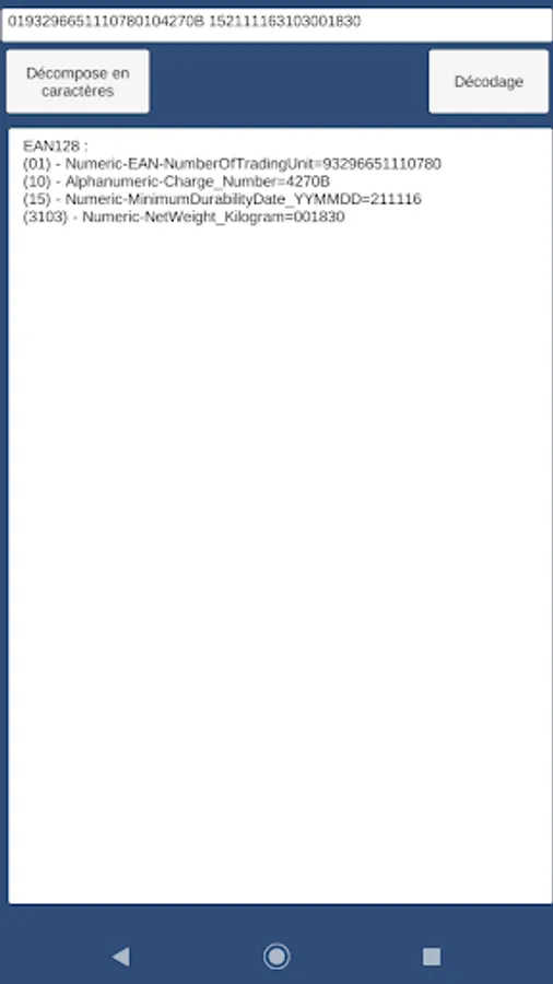 Depending on the bar code returns the article reference, weight, price, lot, ....