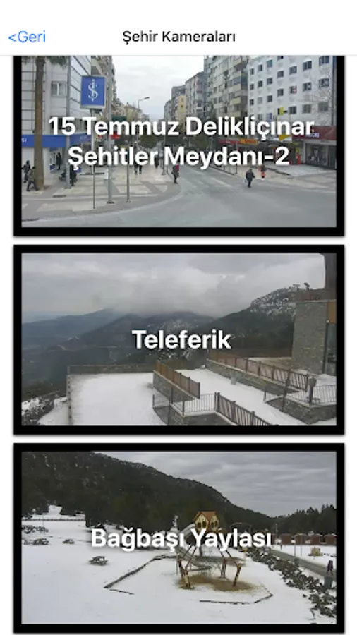 * Live monitoring of the cameras in 15 July Delikliçınar Martyrs Square, Laodikeia Ancient City, Çamlık, İncilipınar, Cable Car, Bağbaşı Plateau, Üçgen Square, Bayramyeri Square and Justice Park, Denizli Ski Center