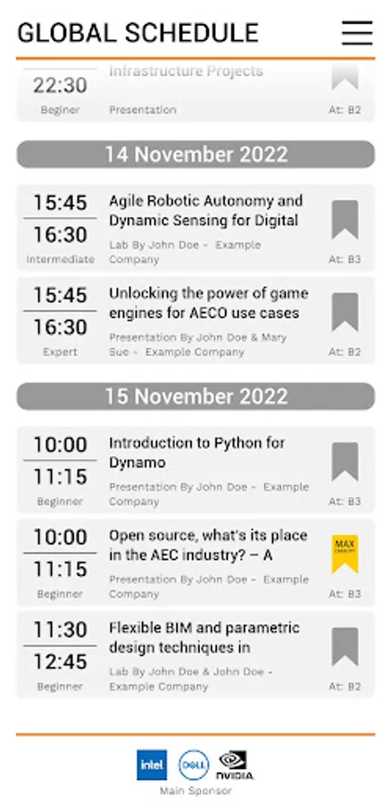 The DBEI Events app is your single source for all of the onsite information when attending the Digital Built Week, BILT, DTS, BCS, DBE Hackathons or any other events run by DBEI. Here you will find, programs, speaker lists, maps, sponsor and exhibitor information, feedback systems and more.
