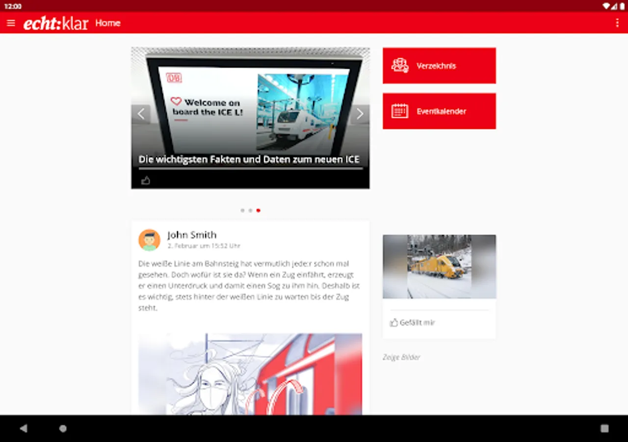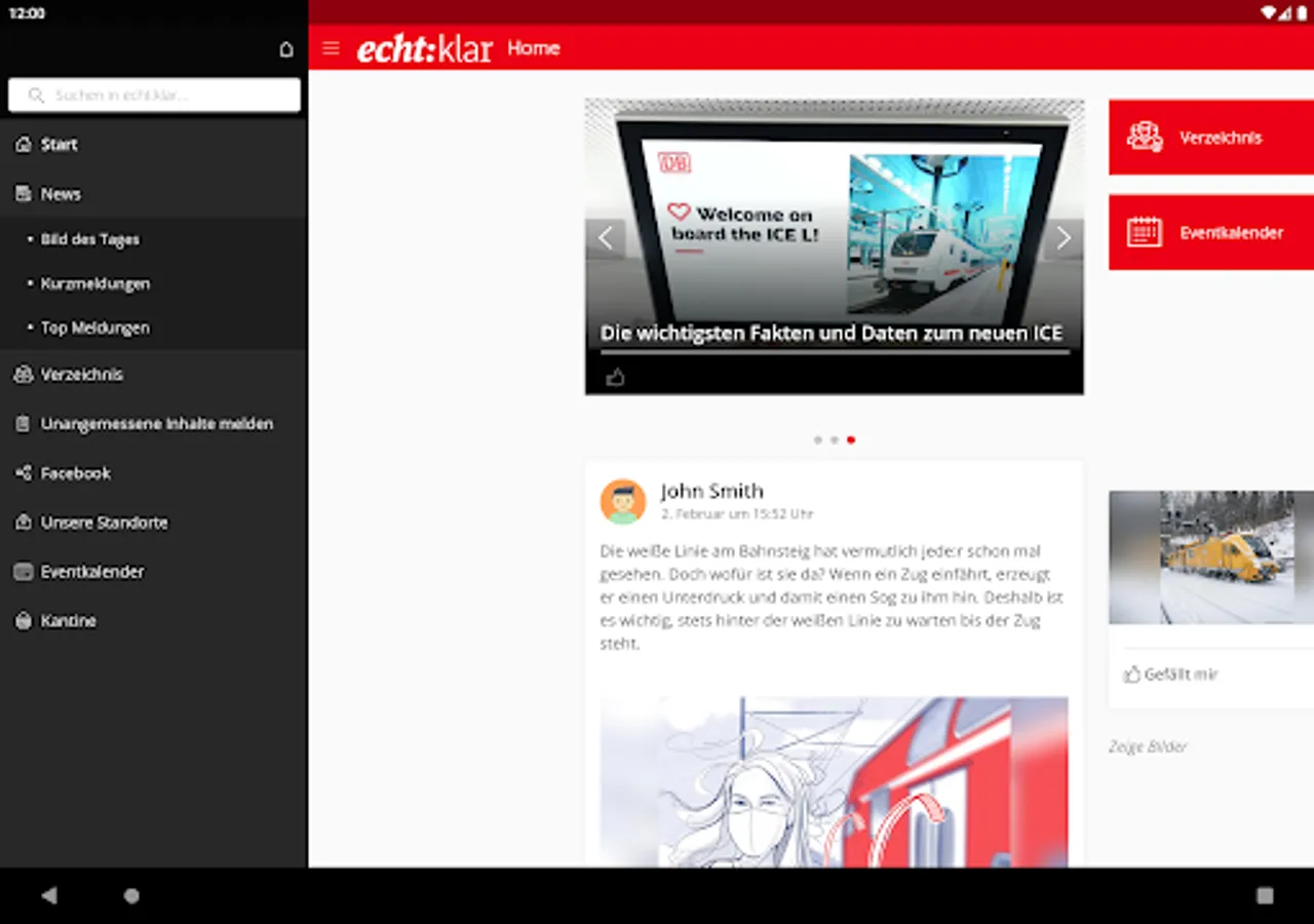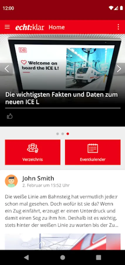 The new app Echt:klar 2.0 offers employees of DB Fernverkehr AG up-to-date information about their company and their workplace.