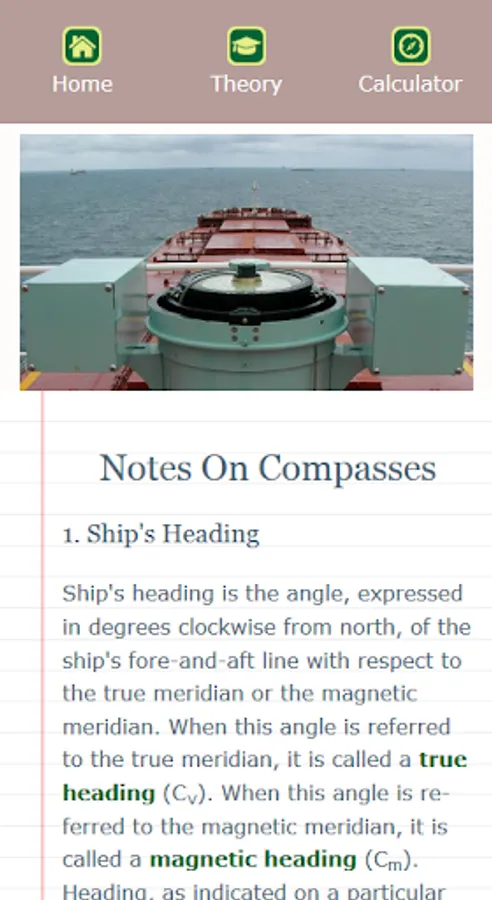 This learning and free compass app explains everything you need to know about compasses (magnetic and gyro types). Variation, deviation and gyro error are clearly explained in the theoretical section and practically applied in the calculator section.