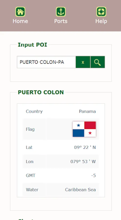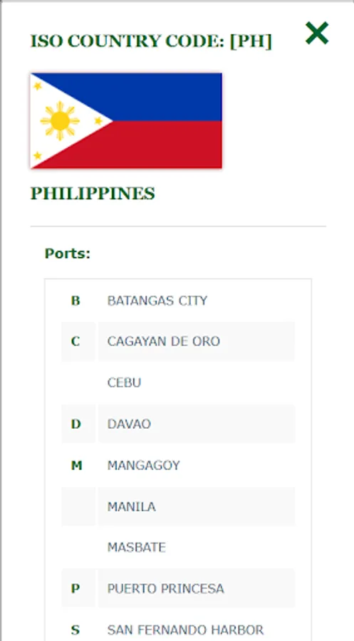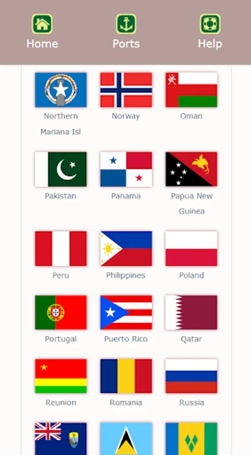 Clicking on a country flag lists the major ports of that country. A very handy tool if you need to explore major ports of the world or for preparing your sea voyage.