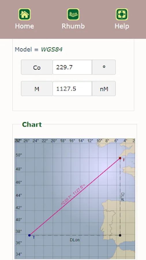 With the rhumb line (loxodrome) calculator you calculate course and distance between a departure position and an arrival position, or find the estimated position starting from a given departure position and a course and distance to go. The graphical representation is a real asset.
