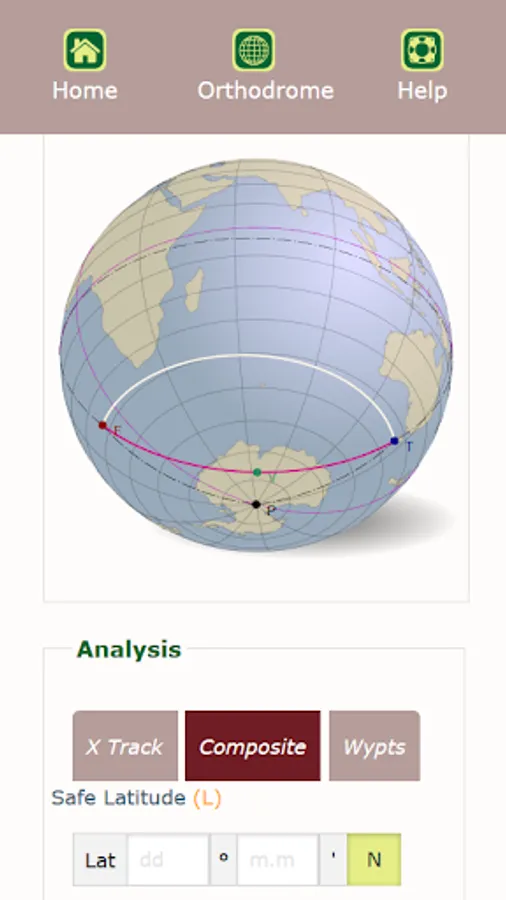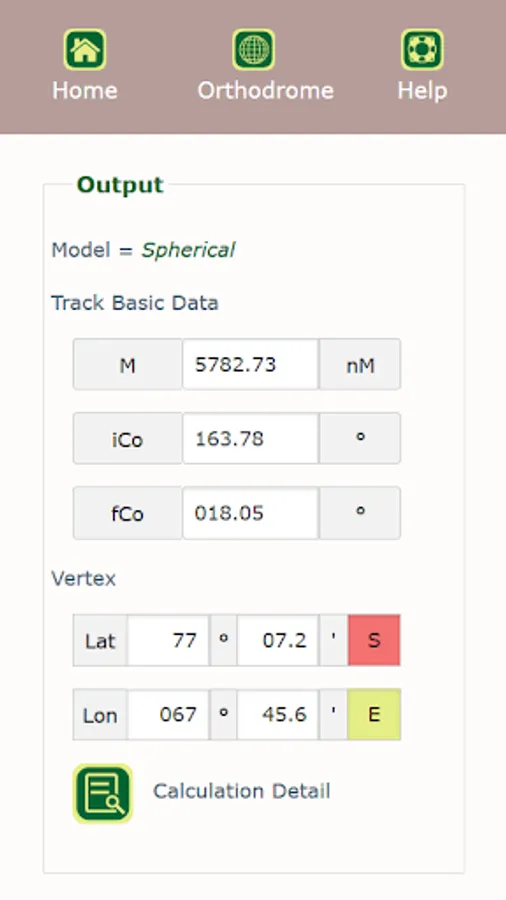 The great circle calculator (orthodrome) let’s you find the distance, initial course and final course between a departure and arrival position. It also calculates the vertex and performs some analysis: cross track analysis, safe latitude analysis and waypoint calculation along the great circle. The calculation details show different methods like ABC tables, Haversine and Napier. Read the help pages carefully.