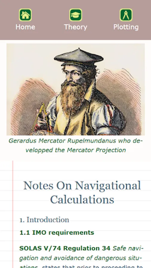 Our theory section is again a reference on nautical charts and on basic chart plotting. The introduction is about SOLAS and IMO requirements.