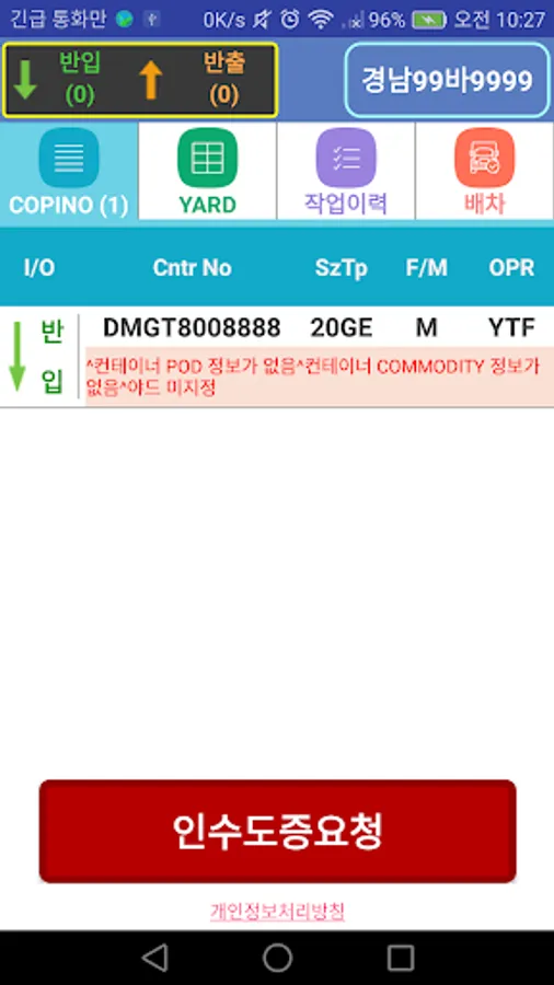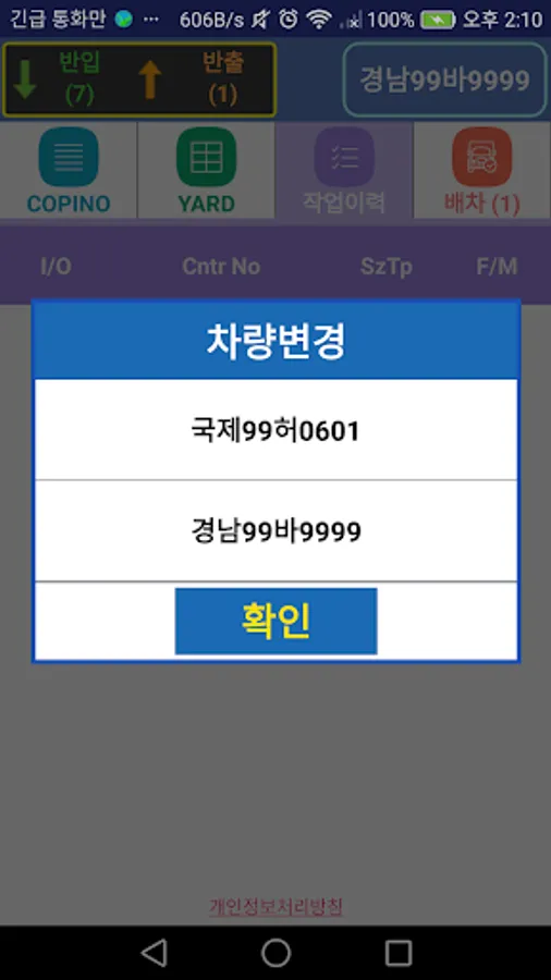 Check the truck number and mobile phone number registered in Oriental Incheon ODCY