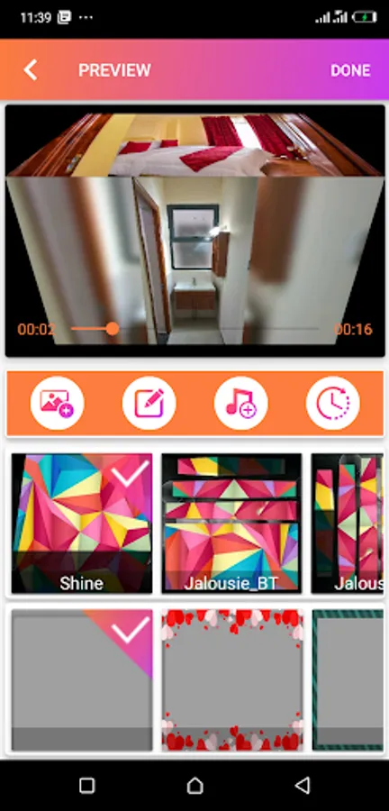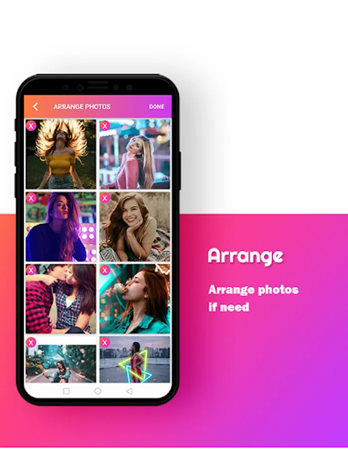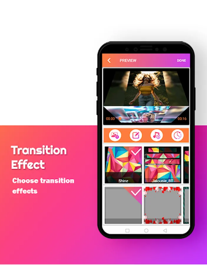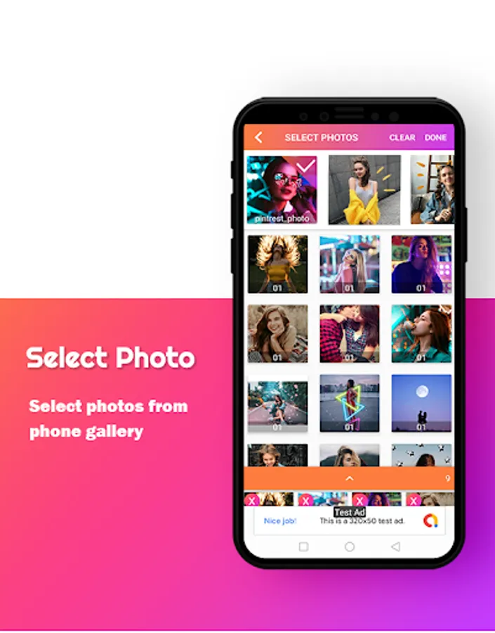 This app helps you create awesome slideshows with selected photos and music from your mobile phone gallery or captured photos from camera, add music track and select stunning animations.