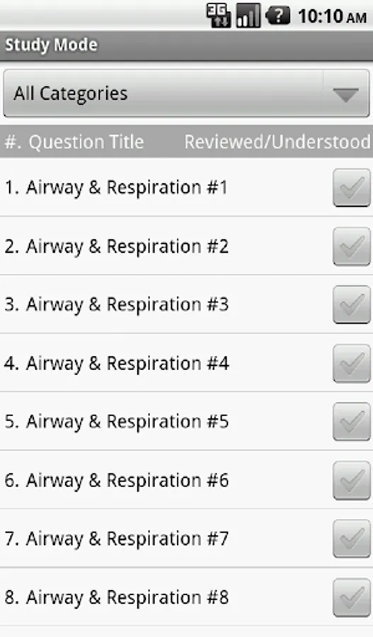 The intuitive Study Mode interface allows you to track your progress through the application and return to difficult questions during your review.